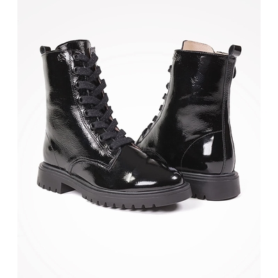 Cuir verni - Fermeture à lacets - Semelle en caoutchouc - Semelle intérieure rembourrée et doublée de cuir - Fabriquée en Espagne