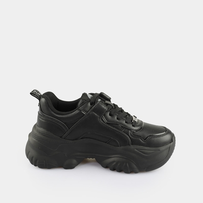 basket basse cuir nappa végan en noir élégant laçage en noir bout rond