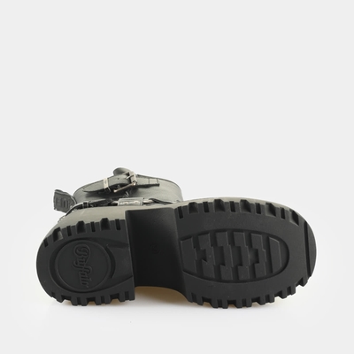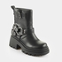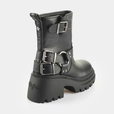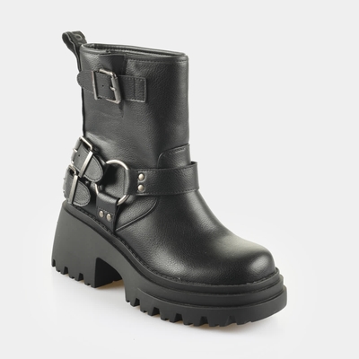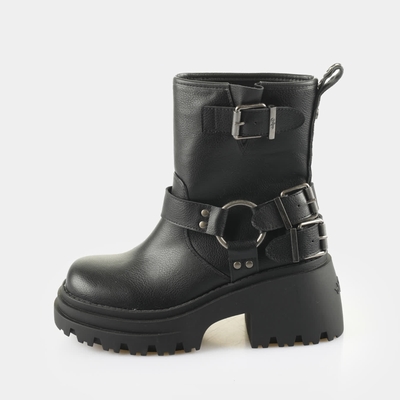 bottine rock avec boucles talon compensé tendance semelle intérieure amovible super douce avec mousse Memory modèle végan aspect cuir nappa noir