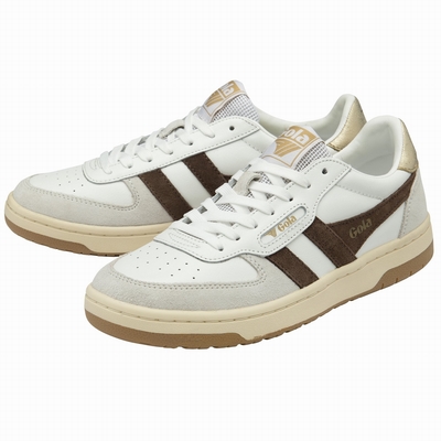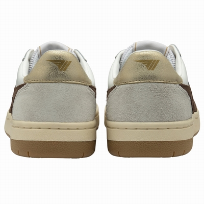 Nouvelle addition à la collection Gola Classics, la Hawk s'inspire des terrains de sport. Cette basket intemporelle pour femme se décline dans une combinaison de cuir, de daim et de mesh, déclinée en blanc/marron foncé/doré et gris clair. Elle est agrémentée d'une semelle cuvette bicolore. Cette combinaison discrète lui confère un style décontracté des années 80, avec une touche old school. À porter avec un jean ample ou votre jupe midi préférée. Design Gola authentique Baskets des années 80 Baskets rétro Baskets héritage Style classique des terrains de sport