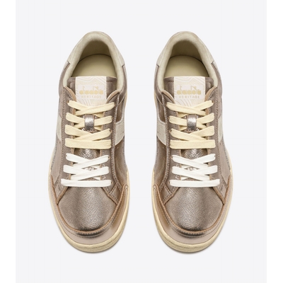Le style héritage renaît sous une nouvelle allure. Inspirée de la silhouette rétro-tennis de Diadora, la sneaker Prestige porte l’attitude on-court dans les looks street du quotidien. La Prestige Metal Used est une chaussure premium confectionnée en cuir lamé et rehaussée de détails en cuir de porc. Le traitement stone wash, qui adoucit le cuir, et le léger cirage, qui confère l’inimitable look usé, style exclusif des sneakers Heritage, exaltent la qualité des matières.