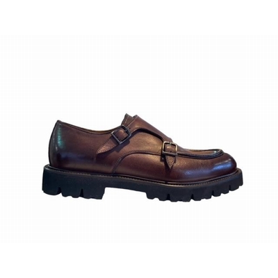 Derby a double boucle Dessus cuir Doublure cuir Semelle exterieure gomme cousue